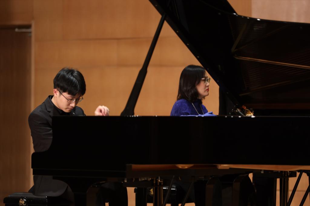 颁奖音乐会的最后,各组一等奖获得者登台演奏获奖曲目,并由其指导教师刘佳、黄南淞分别为他们演奏二钢部分。两对师生组合用高超的演奏技术为全场观众带来一场惊艳震撼的听觉盛宴。