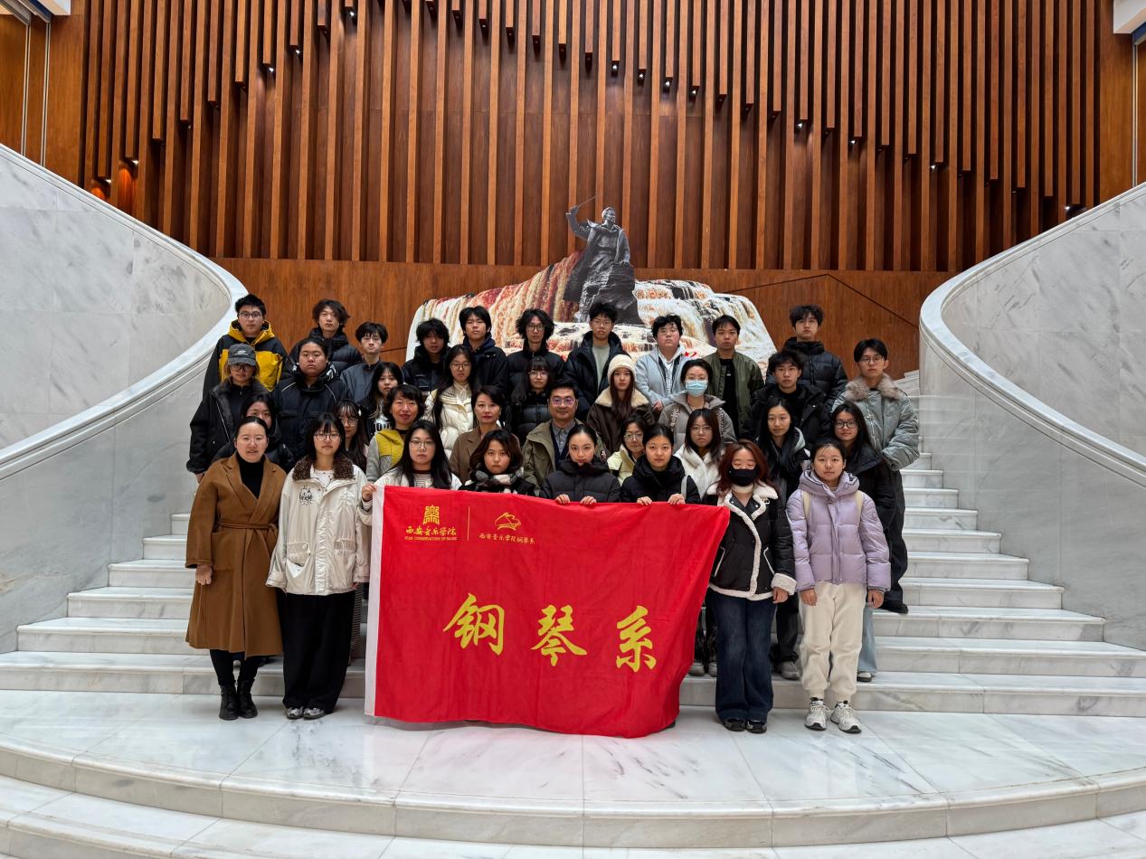 参观结束后,钢琴系师生在音乐会客厅开展深度交流。同学们结合钢琴专业学习实际,围绕如何精准把握中国钢琴作品的民族风格、《黄河协奏曲》演奏中兼具原作精神与个人诠释的平衡,以及校图书馆钢琴相关馆藏资源等问题开展了激烈讨论。杨国栋向同学们针对性提出建议:一是广泛阅读积淀思想,避免对作品的机械模仿;二是多元聆听各类演绎,尤其要深耕民歌、秦腔等中国传统音乐,把握民族作品精神内核;三是充分利用图书馆资源,系统收集乐谱与音频资料,夯实专业基础。